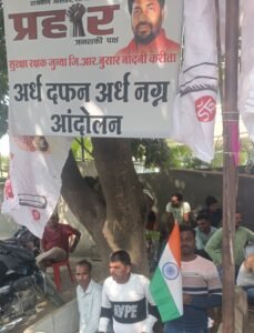 अमरावती,(प्रतिनिधी) : सुरक्षा रक्षक मंडळाने सुरक्षा रक्षकांची घेतलेली अन्यायकारक मैदानी चाचणी आणि अन्य प्रलंबित मागण्यांच्या पूर्ततेसाठी प्रहार जनशक्ती पक्षाच्या नेतृत्वात शकडो सुरक्षा रक्षकांनी आज १९ जानेवारी २०२६ पासून अमरावती जिल्हा सुरक्षा रक्षक मंडळाच्या कार्यालयासमोर “उपोषणास्त्र” उपसले आहे.मागण्यांच्या पूर्ततेसाठी शासनाला अल्टिमेटम देण्यात आला असून तत्काळ दाखल न घेतल्यास कुटुंबासह ‘अर्धनग्न व अर्धदफन’ आंदोलन करण्याचा निर्वाणीचा इशाराही प्रहारचे जिल्हाध्यक्ष गौरव ठाकरे यांनी दिला आहे. त्यामुळे अमरावती विभागात चांगलीच खळबळ उडाली आहे.