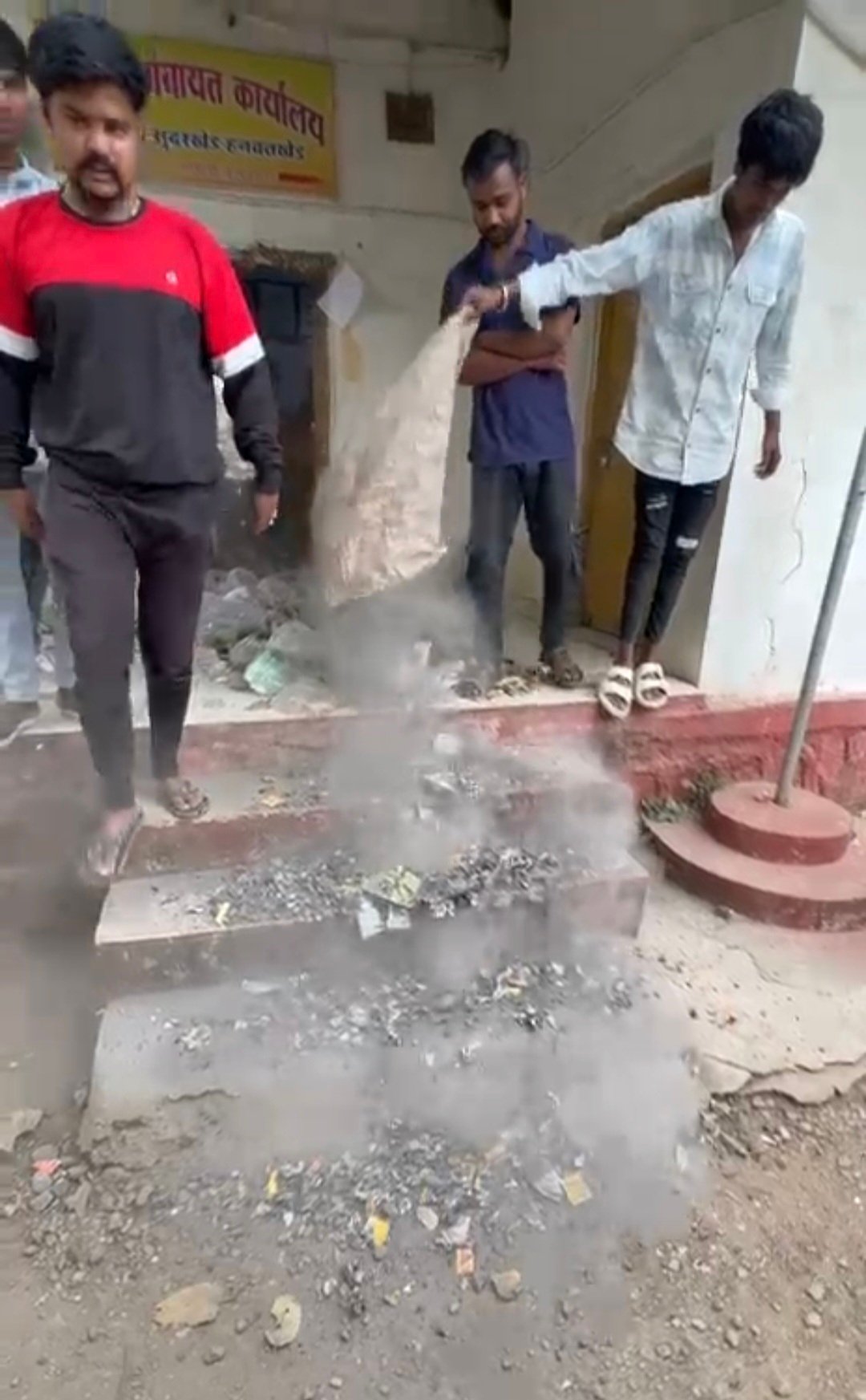 गावातील तरुणांनी ग्रामपंचायत कार्यालय गाठून अनेकदा लेखी व तोंडी तक्रारी केल्या. मात्र, ग्रामपंचायत प्रशासनाकडून आश्वासनांचा पलीकडे काहीच करण्यात आले नाही. प्रशासनाच्या या ढिम्म कारभाराला कंटाळलेल्या तरुणांनी अखेर आज २१ जानेवारी रोजी चांगलाच आक्रमक पवित्रा घेत साचलेला कचरा जमा करून ग्रामपंचायत कार्यालयात नेऊन टाकला. आमच्या घरासमोर आणि रस्त्यावर कचरा राहू शकतो, तर तो ग्रामपंचायतीमध्ये का नसावा?, असा संतप्त सवाल उपस्थित करत ग्रामपंचायत प्रशासनाचा निषेध नोंदविला. तरुणांनी अचानक केलेल्या या आंदोलनामुळे ग्रामपंचायत कर्मचाऱ्यांची चांगलीच धावपळ उडाली.