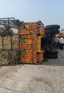 दुधा (ता. बुलढाणा) कडून युपी-८३-एटी-७६५३ क्रमांकाचा ऊसाने भरलेल्या एक ट्रॅक धाड येथील पैनगंगा साखर कारखान्याकडे जात होता. हा ट्रॅक मर्दडी देवीच्या घाटातील वळणावर पोहोचल्यानंतर ट्रॅक चालकाचे ट्रकवरील नियंत्रण सुटले आणि सदर ट्रक रस्त्यावरच पलटी झाला. त्यामुळे ट्रकमधील ऊस रस्त्यावर पडला. या अपघातात कोणतीही जिवितहानी झाली नाही. मात्र, ट्रकचालक किरकोळ जखमी झाला. अपघात घडताच रस्त्याने जाणाऱ्या नागरिकांनी मदतीसाठी ट्रकचालकाकडे धाव घेऊन त्याला उपचारासाठी धाड येथील ग्रामीण रुग्णालयात भरती केले. अपघातामुळे या मार्गावरील वाहतूक काही काळ विस्कळीत झाली होती. घटनेची माहिती मिळताच धाड पोलिसांनी घटस्थळी धाव घेऊन वाहतूक सुरळीत करत घटनास्थळ पंचनामा केला. घटनेचा पुढील तपास ठाणेदार प्रताप भोस यांच्या मार्गदर्शनात धाड पोलीस करीत आहेत.
