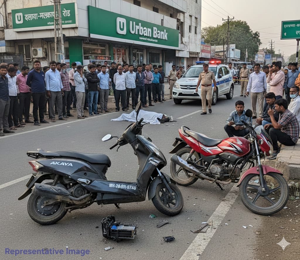 सांगळद येथील रहिवासी असलेले प्रमोद किसन खर्चे (वय ६४ वर्षे) यांचा भाऊ अजय हा ७ फेब्रुवारी २०२६ रोजी दुपारी ४.३० वाजेच्या सुमारास त्यांच्या आकाया कंपनीच्या इलेक्ट्रिक स्कुटी क्रमांक एमएच-२८-बीआर-८७४८ ने मोताळा येथील अर्बन बँकेसमोरून जात होता. त्याच वेळी समोरून येणाऱ्या होंडा ड्रीम युगा मोटरसायकल क्रमांक एमएच-२८-एवाय-३२०३ वरील चालक वैभव कैलास बावस्कर (वय २३ वर्षे) रा. कोथळी याने त्याच्या ताब्यातील दुचाकी भरधाव वेगात आणि निष्काळजीपणे चालवून खर्चे यांच्या स्कुटीला जोरदार धडक दिली. या धडकेत अजय खर्चे यांचा जागीच मृत्यू झाला. तर आरोपी चालक वैभव बावस्कर हा स्वतः देखील जखमी झाला आहे. धडक इतकी भीषण होती की इलेक्ट्रिक स्कुटीचे मोठ्या प्रमाणावर नुकसान झाले आहे. विशेष म्हणजे, आरोपीने दुचाकीवर स्वतःसह इतर दोघांना बसवून रहदारीच्या नियमांचे उल्लंघन केले. घटनेची माहिती मिळताच परिसरातील नागरिकांनी मदतीसाठी धाव घेतली. या घटनेमुळे सांगळद परिसरात शोककळा पसरली आहे.