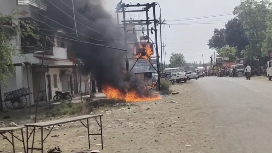 जानेफळमध्ये जड वाहनाच्या धक्क्याने डीपीला भीषण आग
