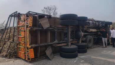 ब्रेकिंग: मर्दडी देवीच्या घाटात ऊसाचा ट्रक पलटी